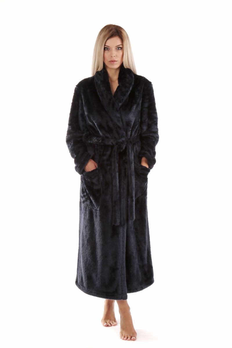 Extra chlupatý župan v klasické délce s šálovým límcem.