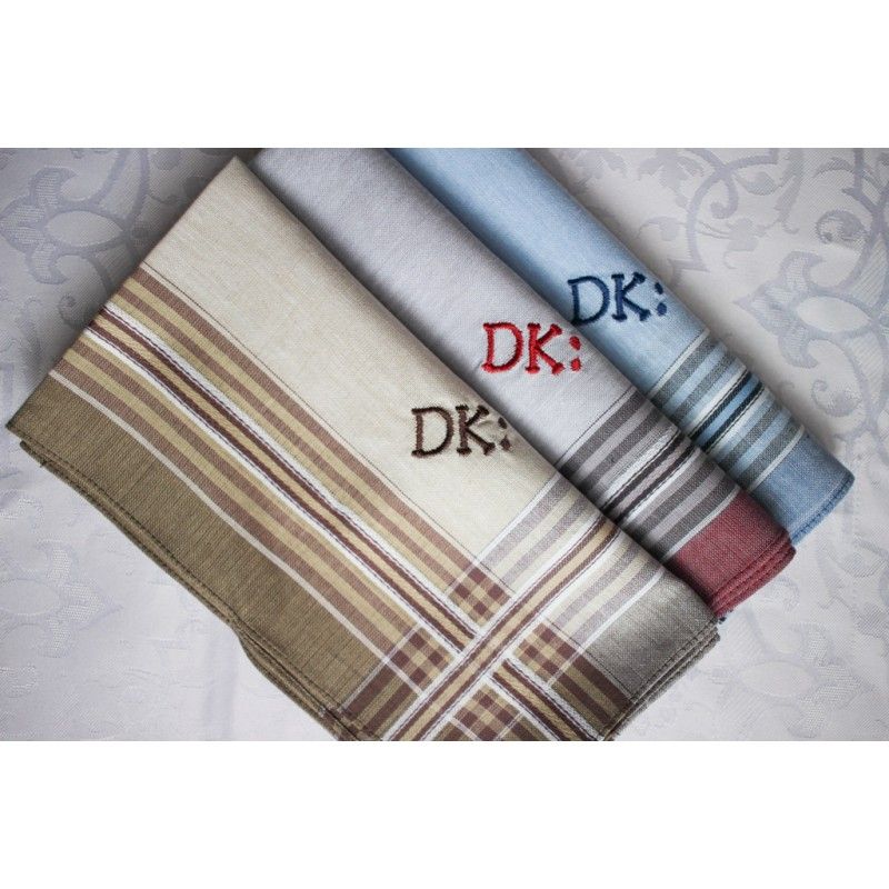 Klasický pánský barevný kapesník vhodný pro vyšití monogramu. Velikost 38x38 cm, materiál 100% bavlna. Kvalitní výrobek od tradiční české firmy. Kapesníky lze prát na 95°C, vzhledem k výšivce však doporučujeme praní na max. 60°C bez použití bělidel a přípravků na bázi chloru. Dezén kapesníku můžete vidět mezi obrázky produktu. V sadě jsou tři elegantní barvy - modrá, béžová a šedá.