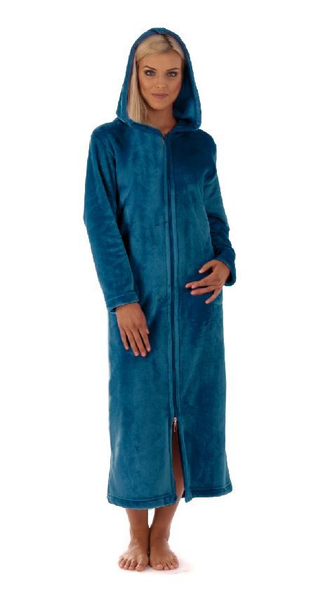 Pohodlný, dlouhý, extra hebký župan v úžasných barvách se zipem a kapucí.