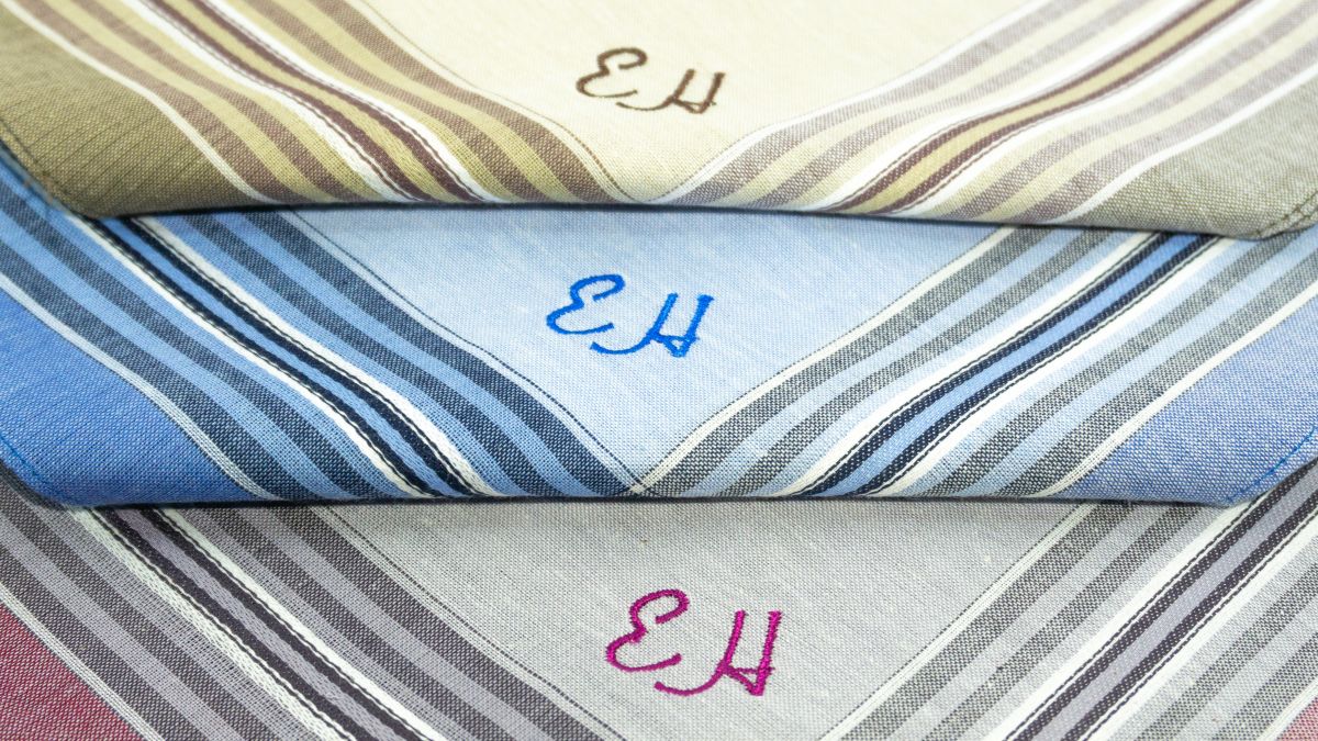 Jméno či monogram vyšíváme v barvách korespondujících s barvami kapesníků (modrá, bordó, tm.hnědá). Lze vyšít i v jiné barvě z naší nabídky, své přání uveďte do poznámky spolu s textem pro vyšití.