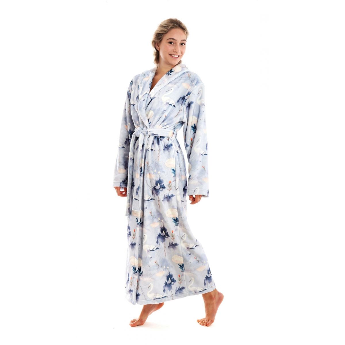 Yuna dámský hřejivý župan v klasické délce se vzorem jeřábů.
